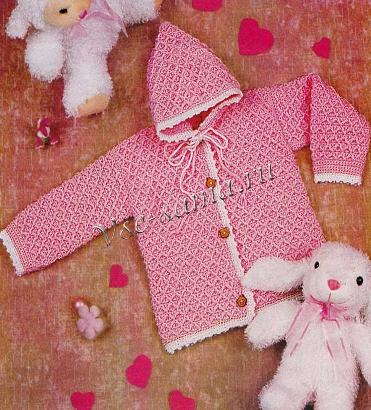 Подобрала несколько вариантов вязанных жакетиков для малышей, связанных крючком. Подруга попросила связать внучке. Вот эти очень понравились.